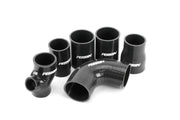 Perrin Boost Tubes take the smoothest, shortest path to get air to and from the intercooler. Off the turbo, a smooth offset coupler carries the hot side air charge through the entire engine bay past the battery, and down behind the radiator to the intercooler core. Cold side boost tubes are mounted as high as possible in the engine compartment to clear all turbo and intake combinations.