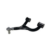 The rear upper control arms are constructed from 4130 chromoly steel and TIG welded on jig fixtures that were designed from the OEM data points. The rod end stud that connects the control arm to the rear hub assembly is CNC machined to exact tolerances using the OEM CAD model to ensure a perfect fit. Finally, the control arms are zinc plated with a black finish to protect against the elements and prevent corrosion.