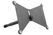 The plate holder is made from laser-cut plate aluminum with a black anodize finish. The tow hook adapter is CNC machined aluminum and anodized black for better corrosion resistance.