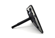 The plate holder is made of thick plate aluminum which is folded in a press break to add rigidity and eliminate any flex. It will not bend or flex under normal conditions.